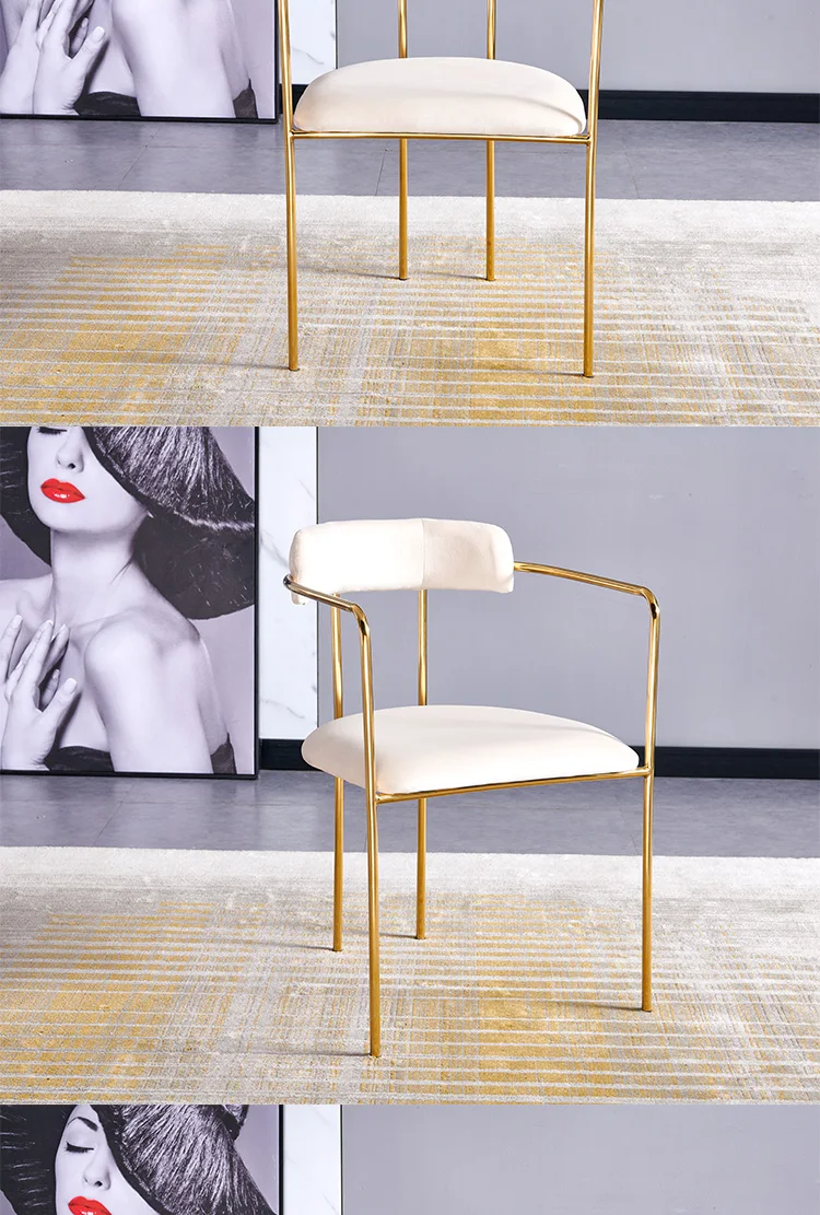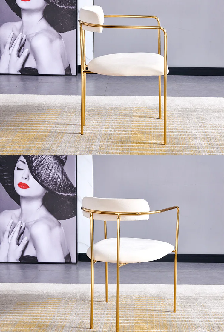 Sleek Sophisticated Style Modern Great Beige Velvet Fabric Gold Metal Frame Scandinavian decor Dining Room Chair