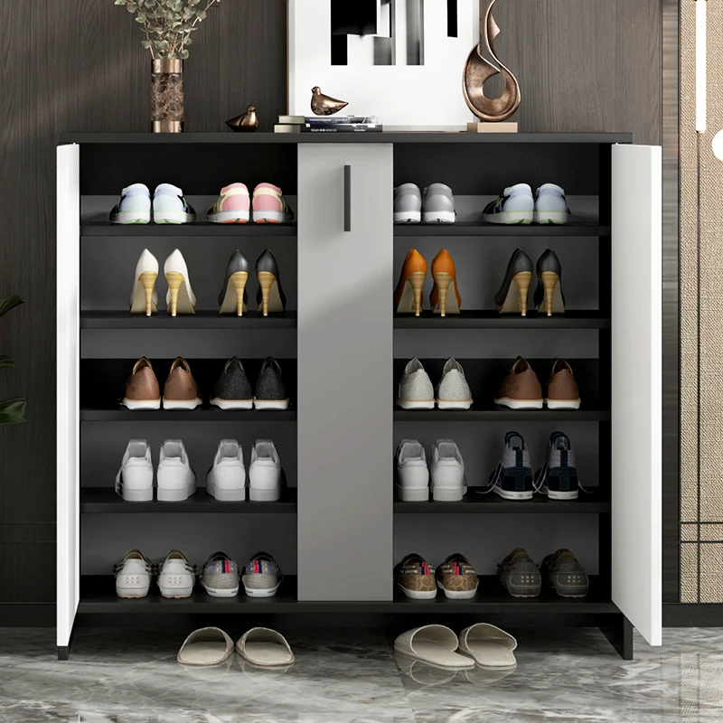 Simple Shoe cabinet home entrance hall cabinet Black and white color multi layer wooden storage shoe rack