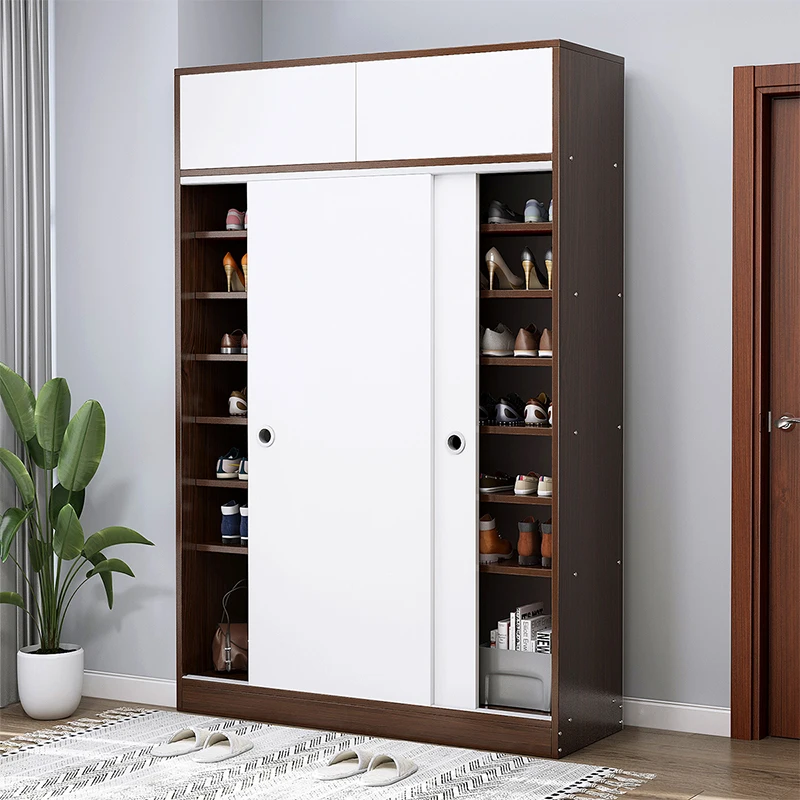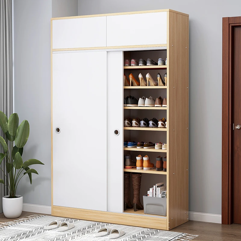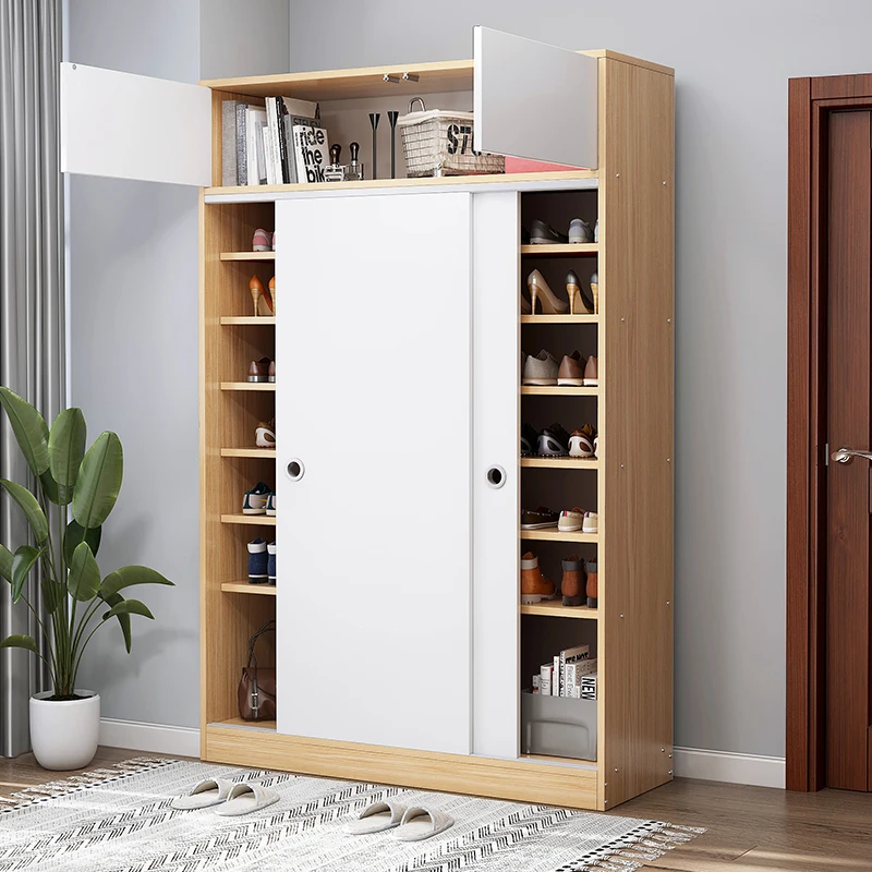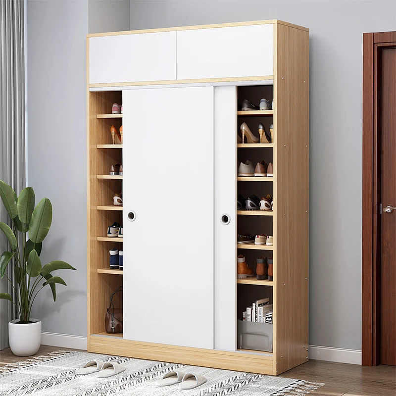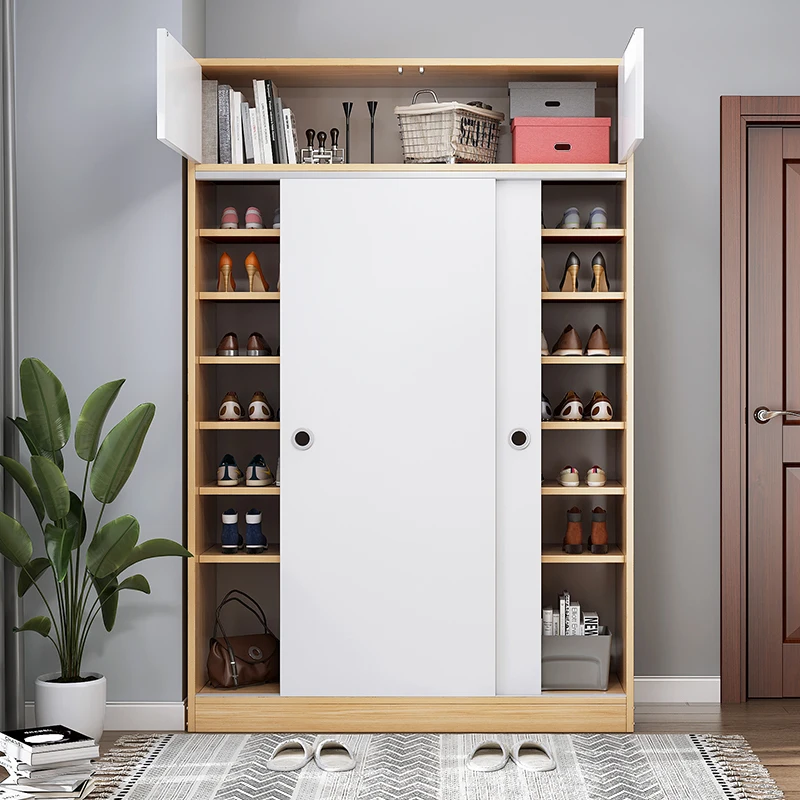 large storage wooden sliding door shoes rack box storage cabinet modern design