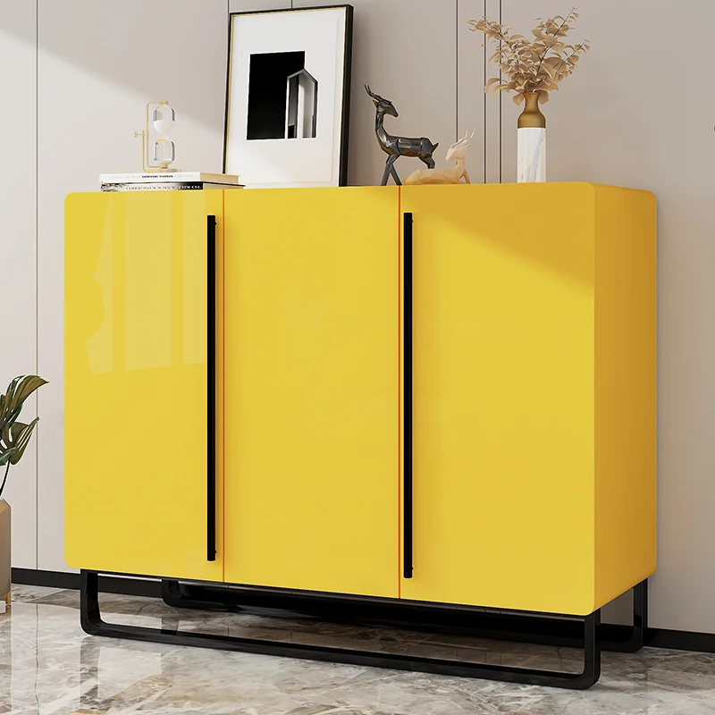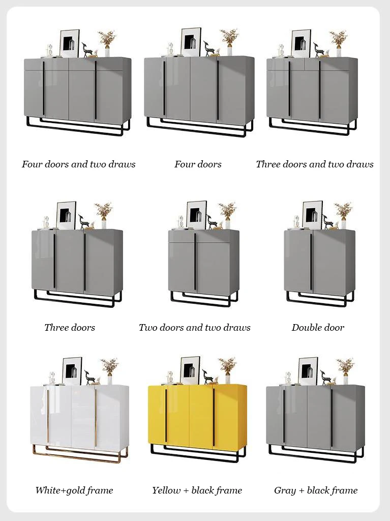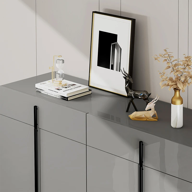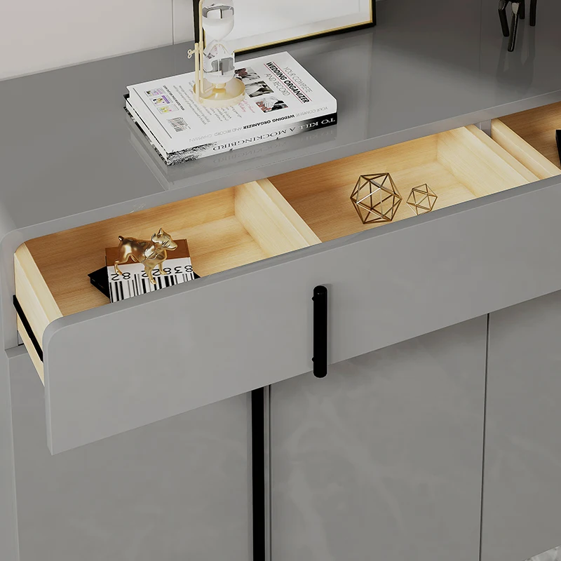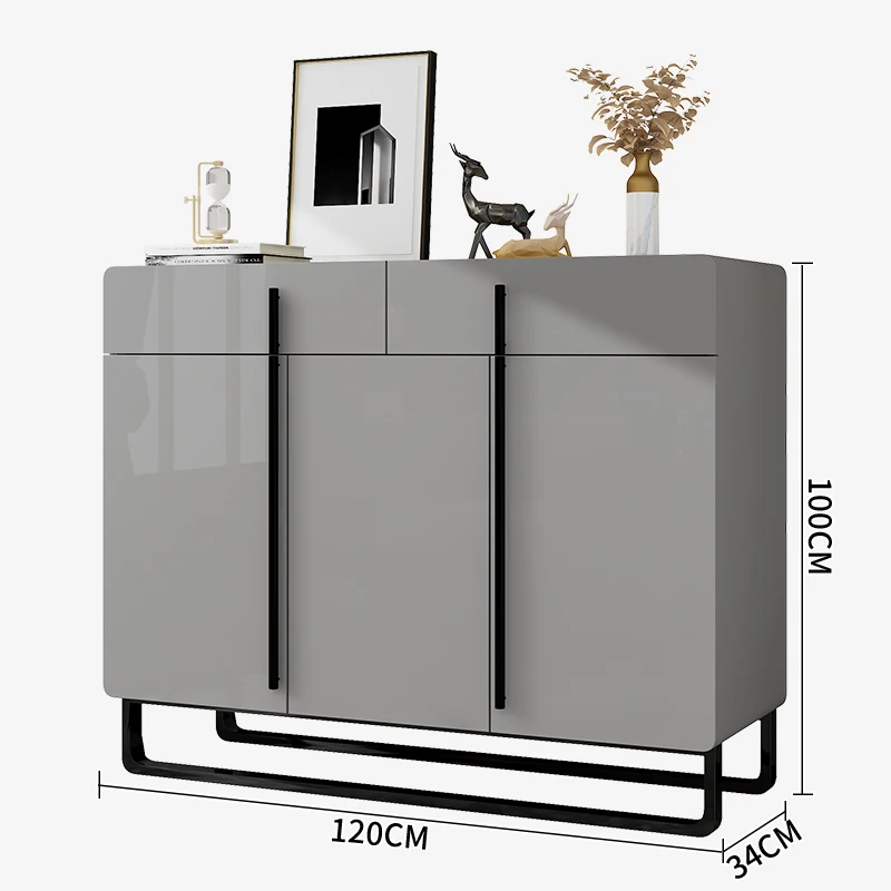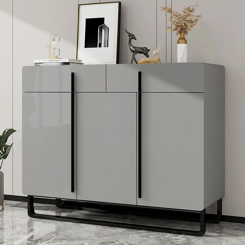 Living room furniture Grey 3-door custom high-gloss large black legs shoe rack cabinets with 2 drawers