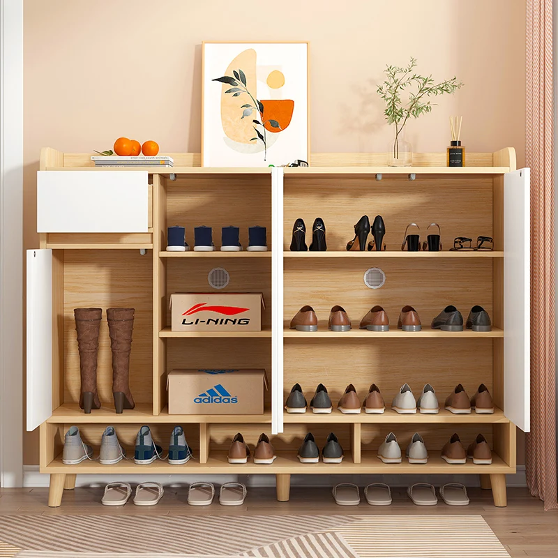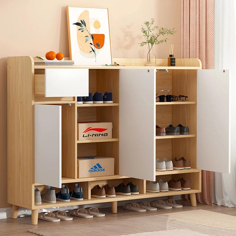 modern DIY assemble home entryway 3 door mdf wood shoe rack storage cabinet