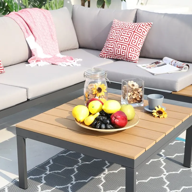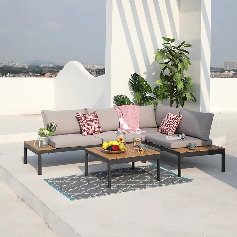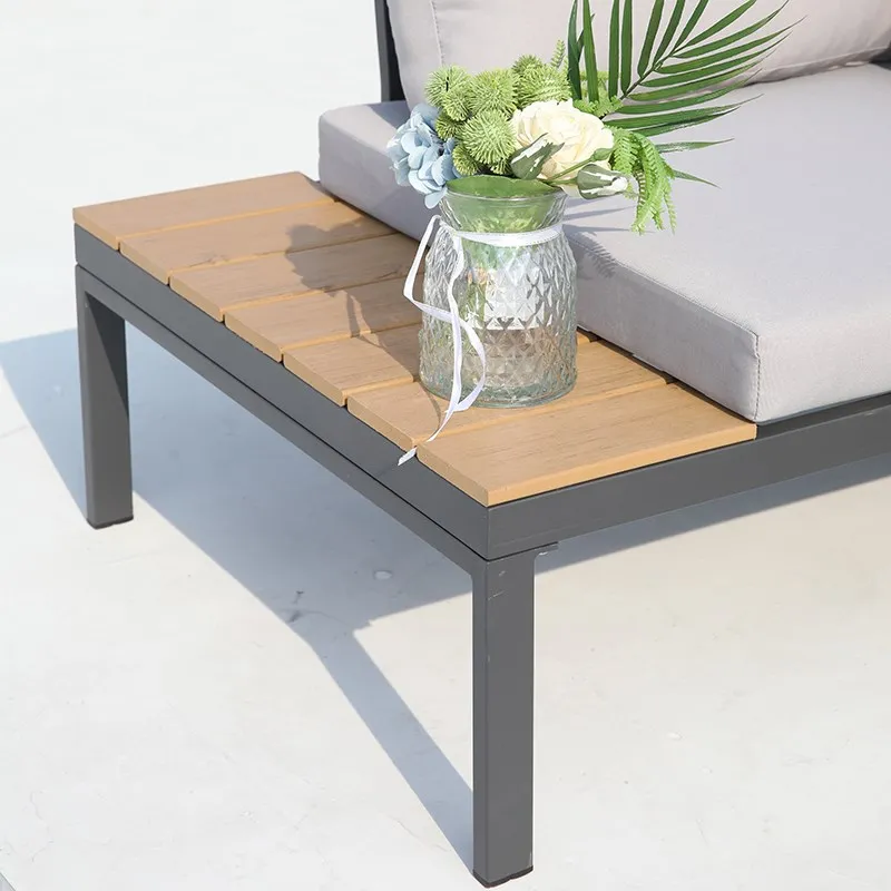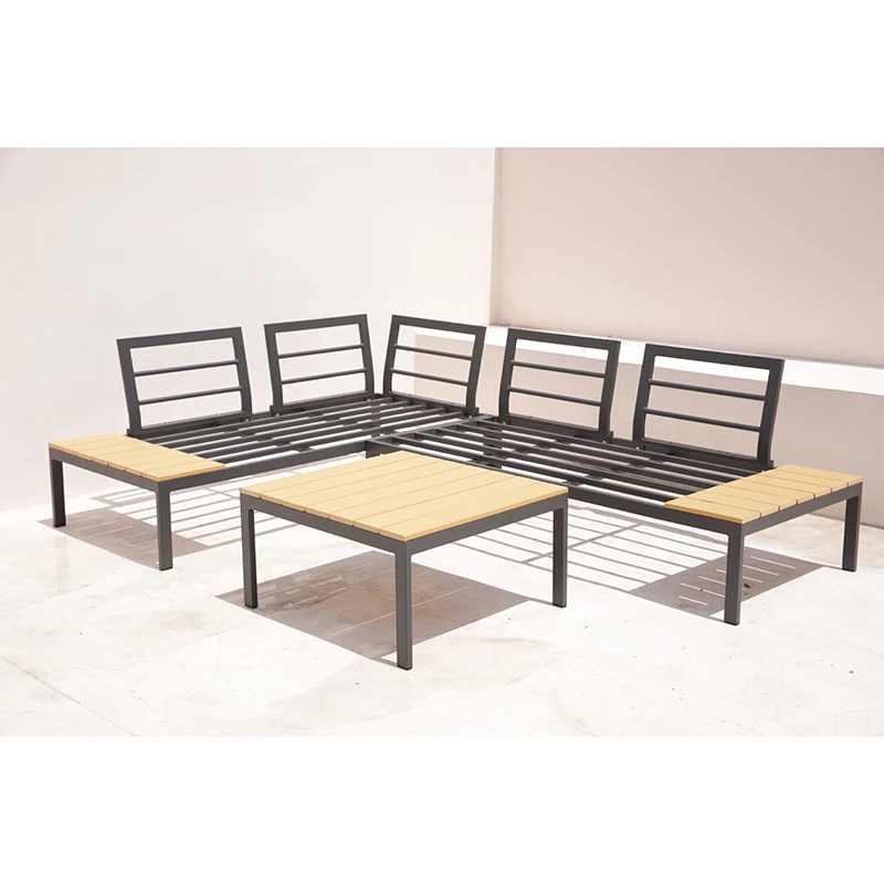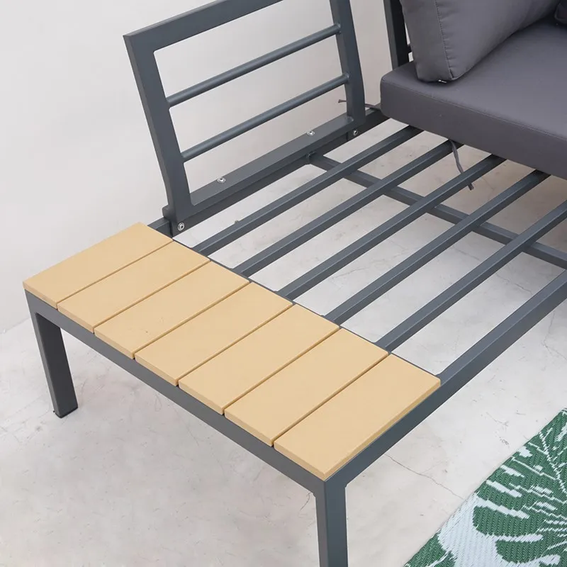 China factory modern style metal steel wood grey outdoor garden sofa set furniture