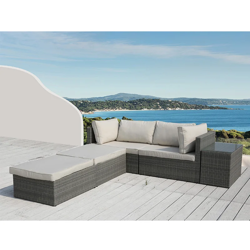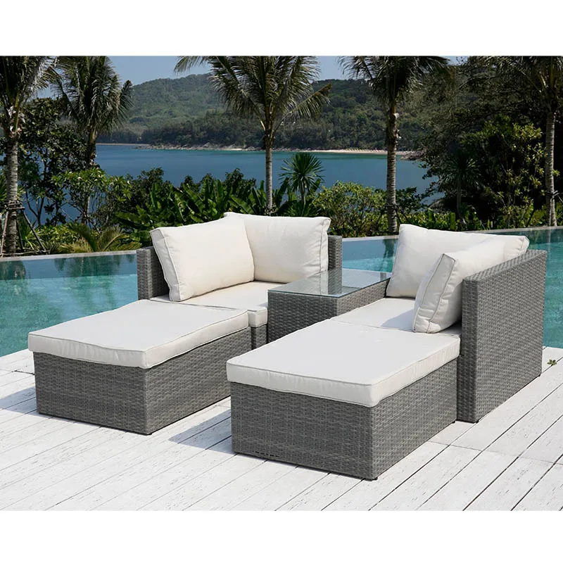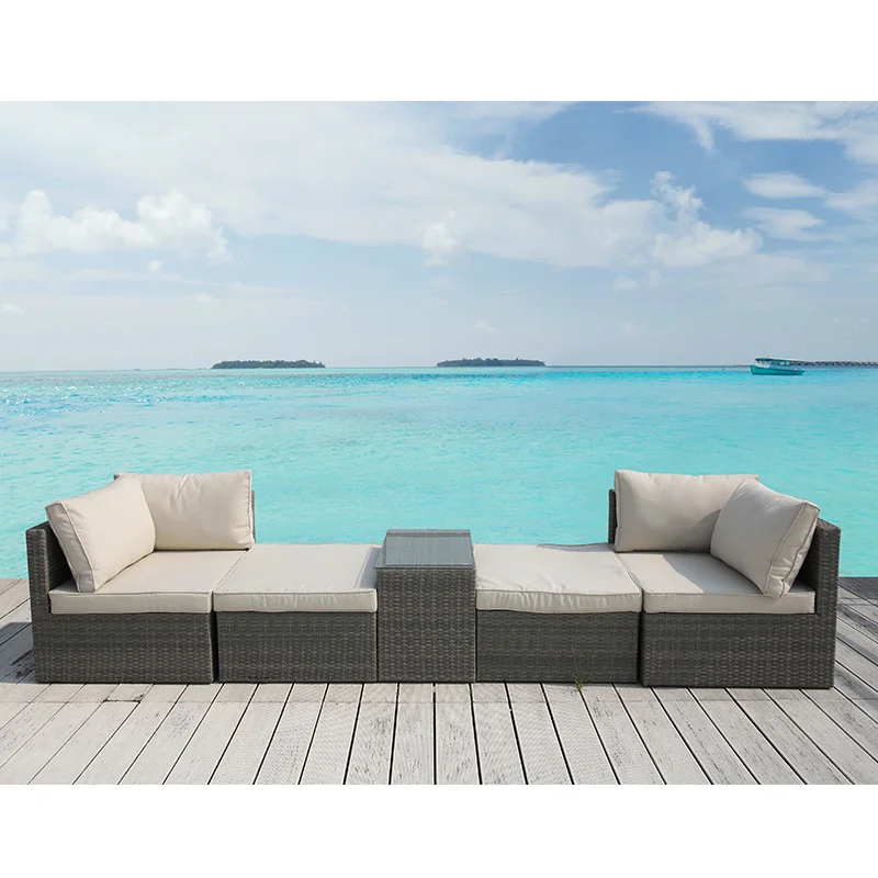 Hot selling 5pcs PE wicker polyester metal steel outdoor furniture garden sofa glass table