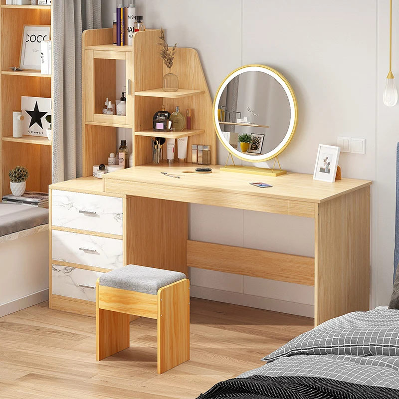 Home Movable Housing Furniture & Household Appliances Bedroom Furniture Dressers Jinan Gu Ling E-Commerce Co., Ltd. Bedroom Multifunctional Modern Minimalist Dressing Table with Storage Box
