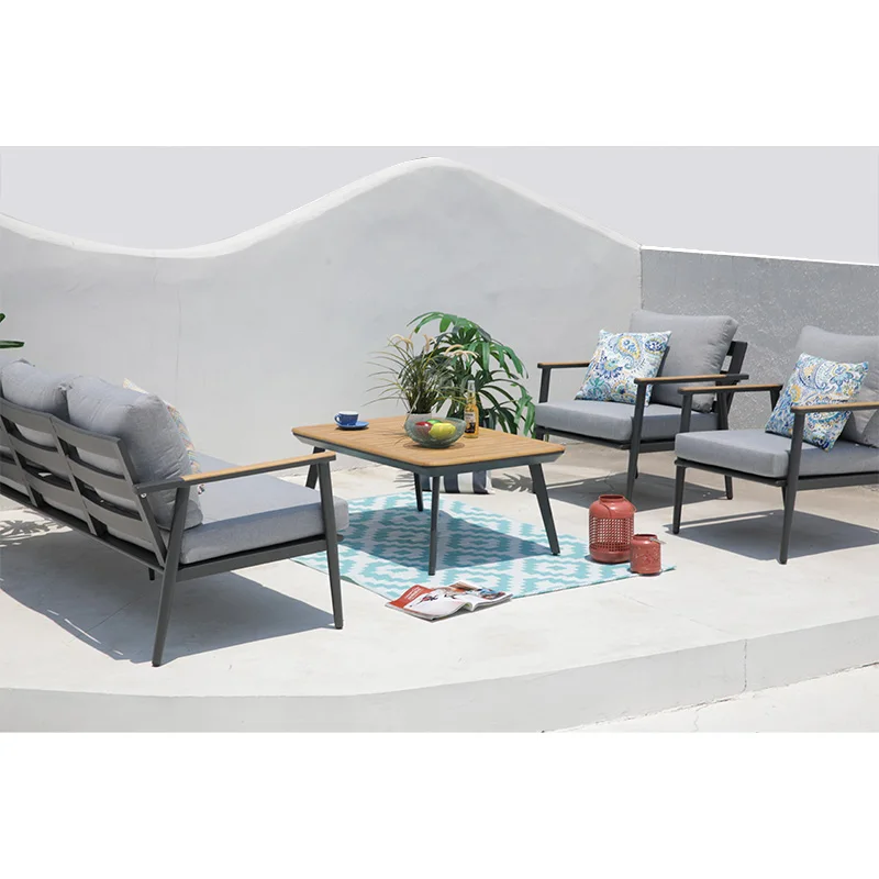 Modern design custom 4 pcs outdoor set aluminum teak wood garden sofa set