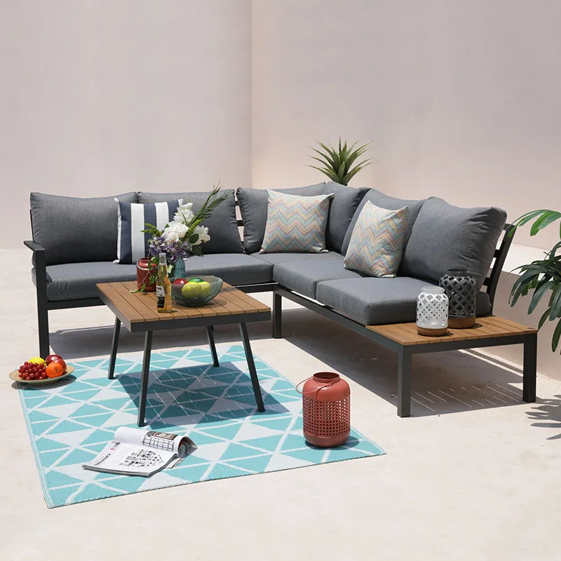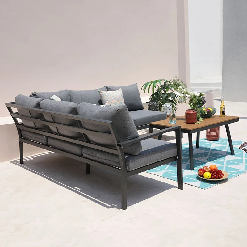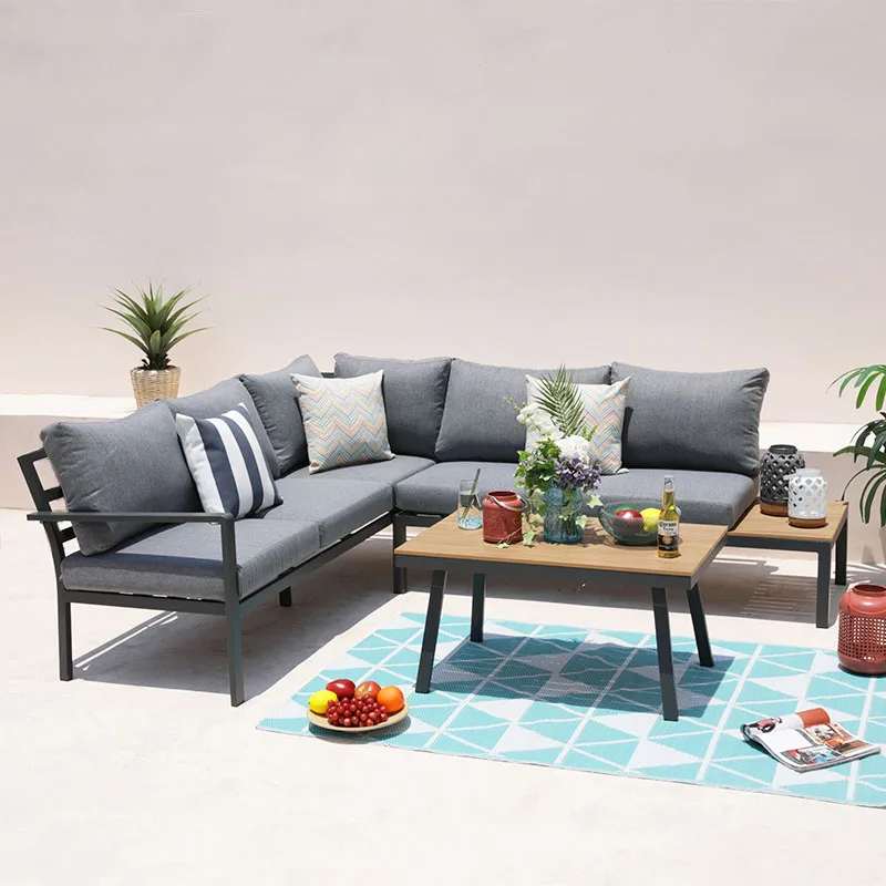 Luxury garden furniture 3pcs aluminium L shape polyester cushion outdoor sofa set