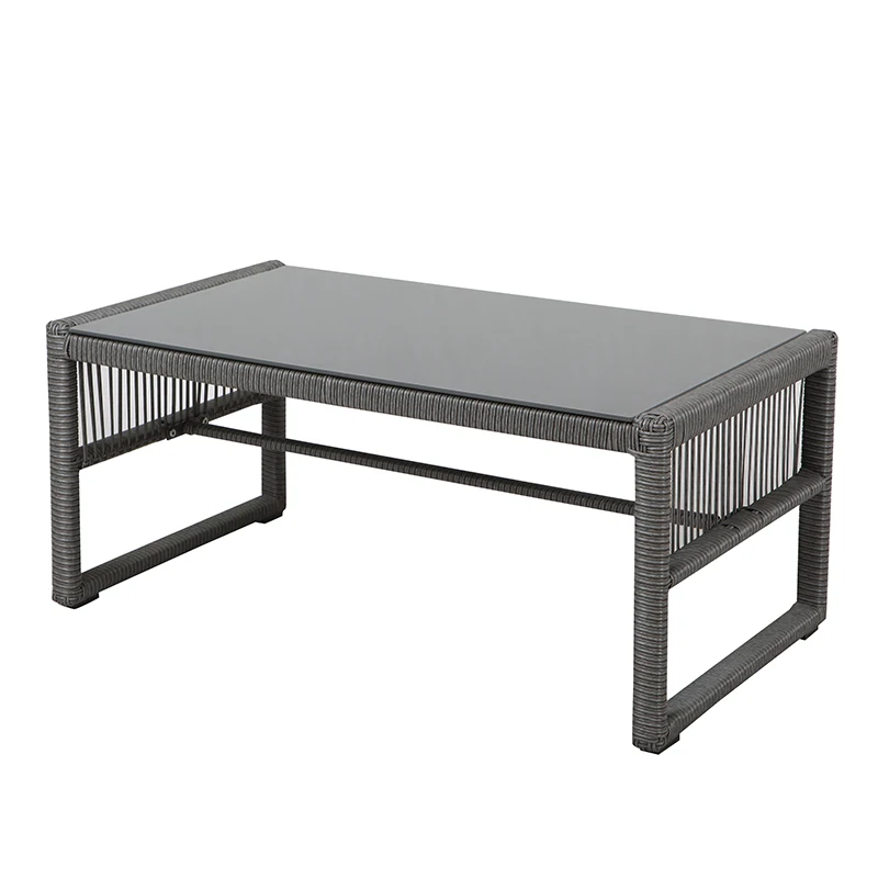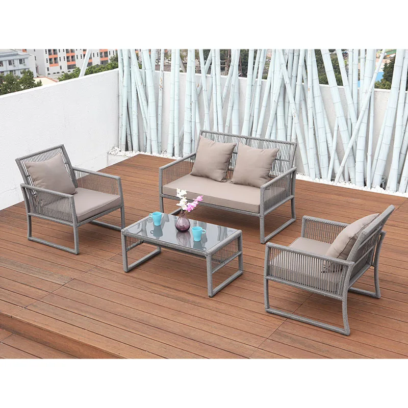 Manufacturer 4 seaters glass table top steel PE rattan garden sofa set for outdoor