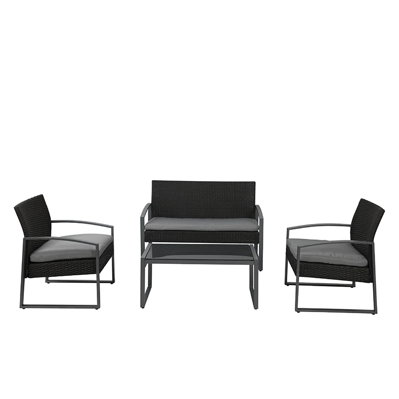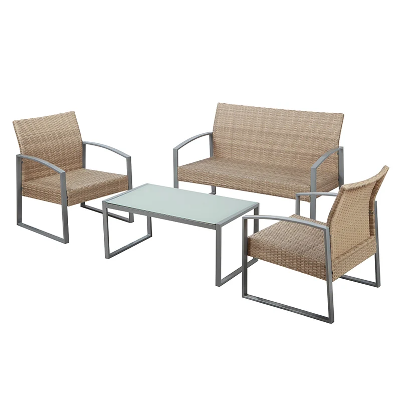 Modern outdoor furniture 4 pieces steel frame PE rattan patio sofa set