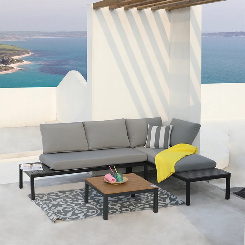 Factory metal steel multiple combinations steel garden sofa bed set with side table
