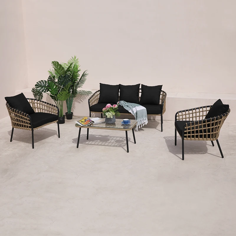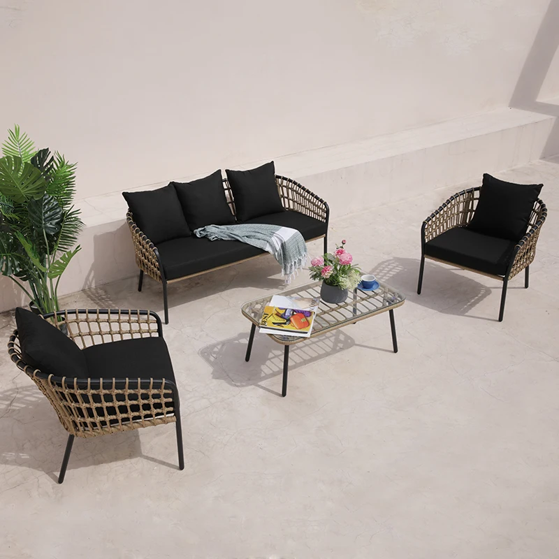 Home Patio Use 4 pcs divano fondolo da giardino Steel Rattan Outdoor Sofa Set for Garden