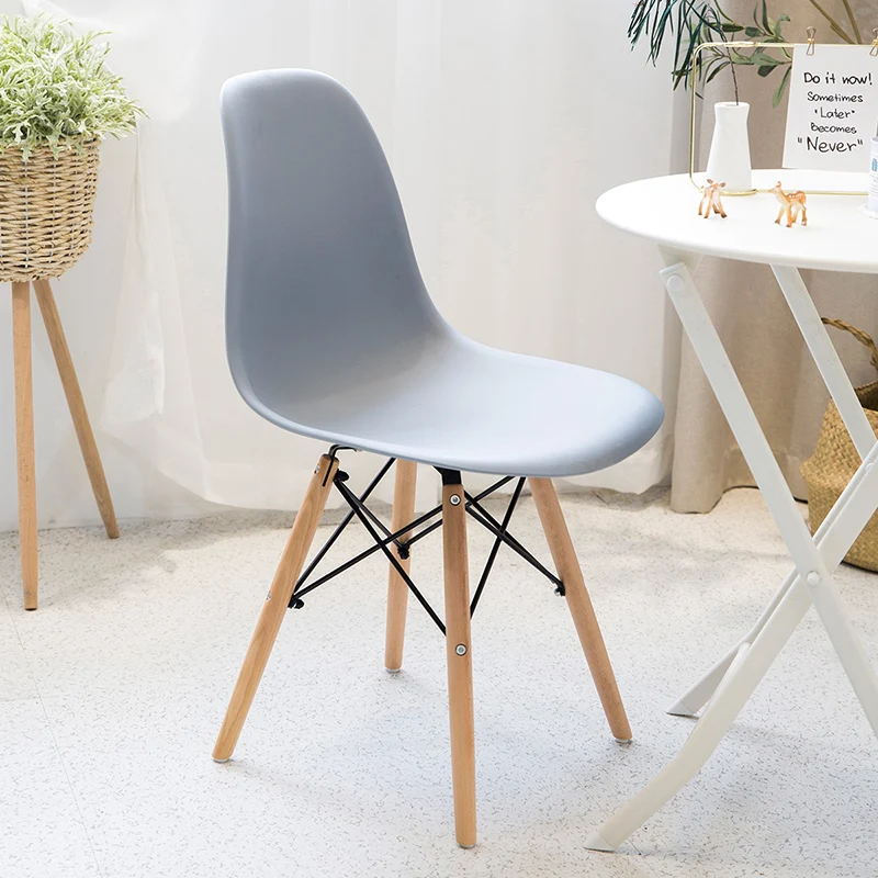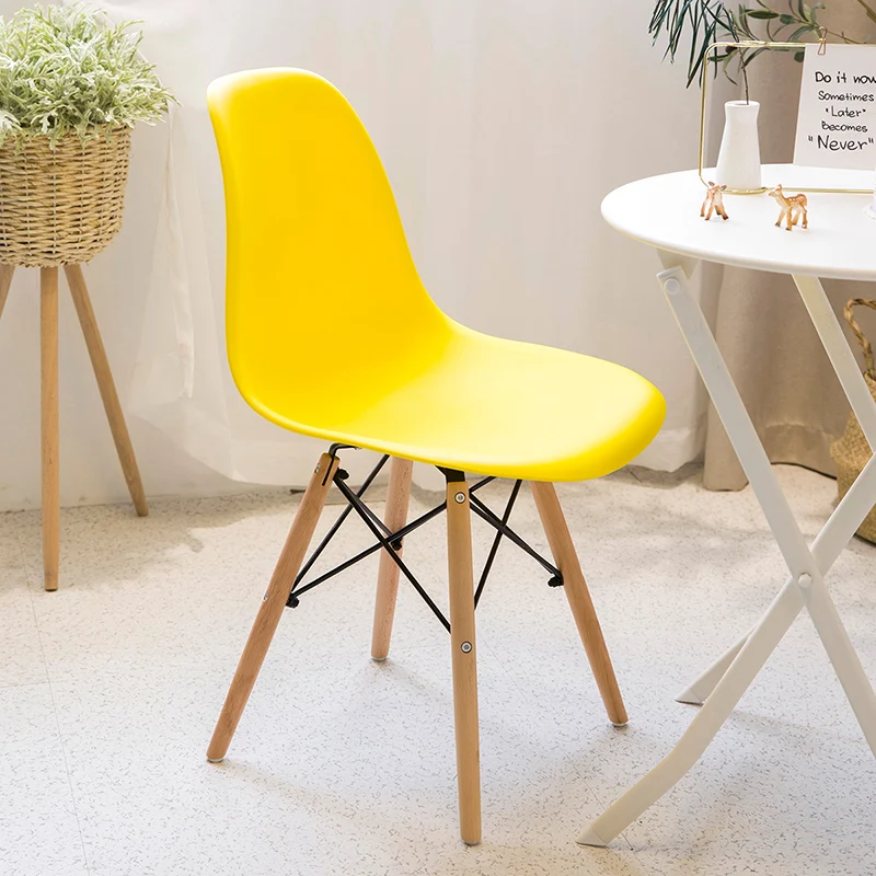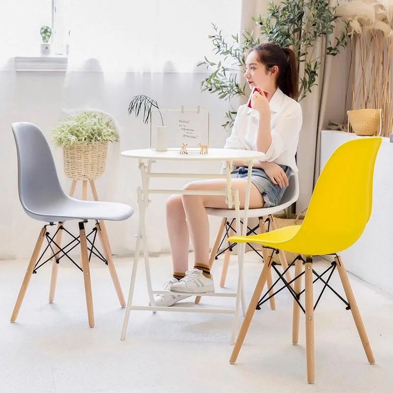 simple modern furniture white plastic dining chair with wooden legs