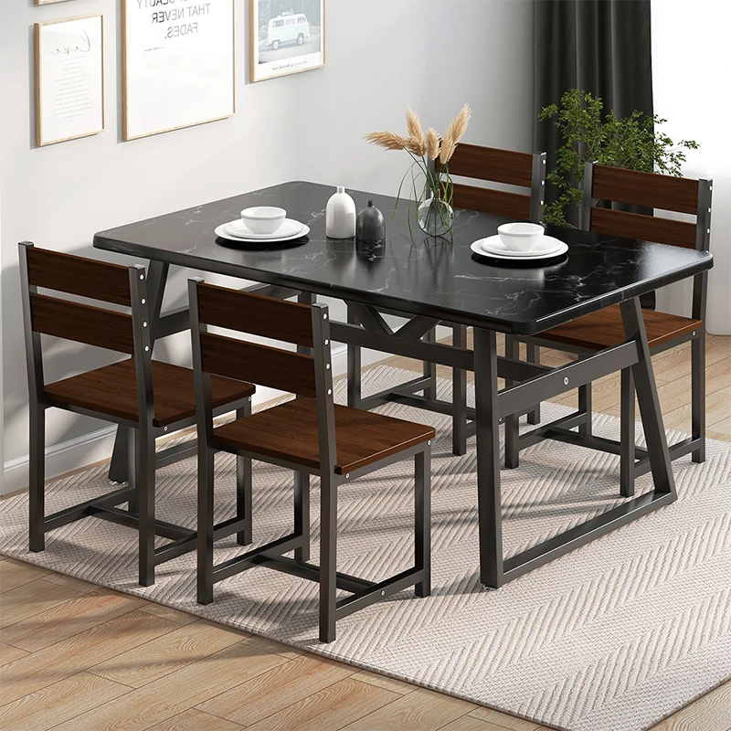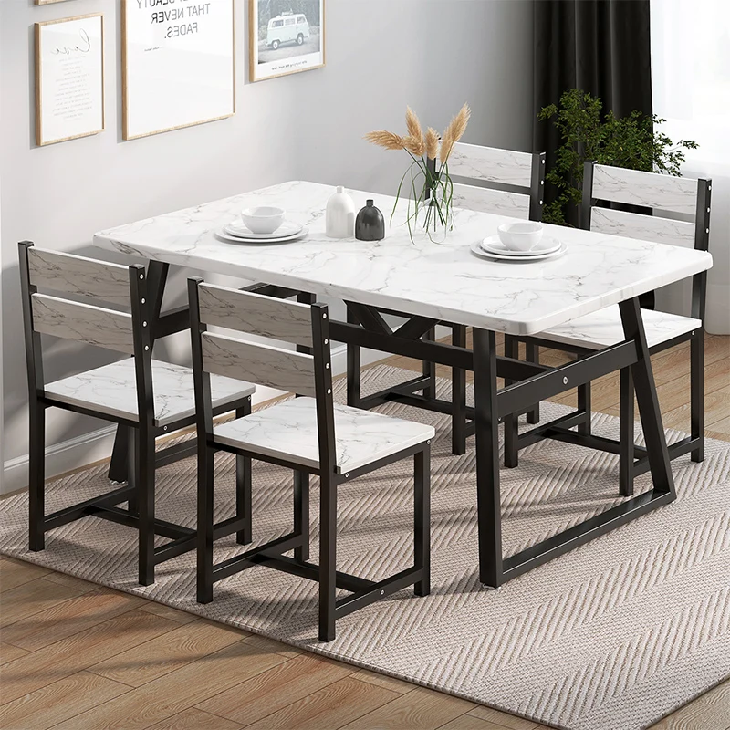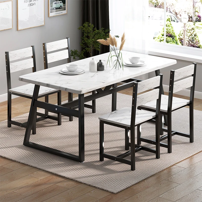 home dining room funiture Classic white and black marble top dining table wood modern design