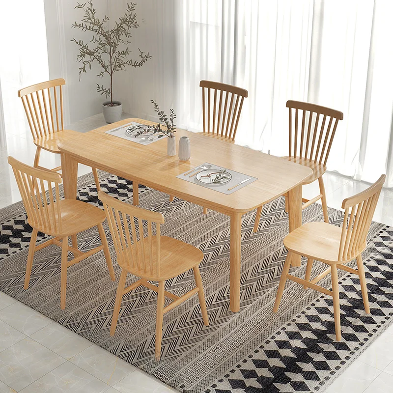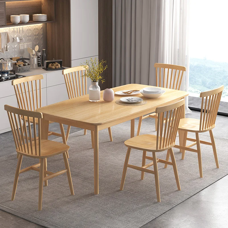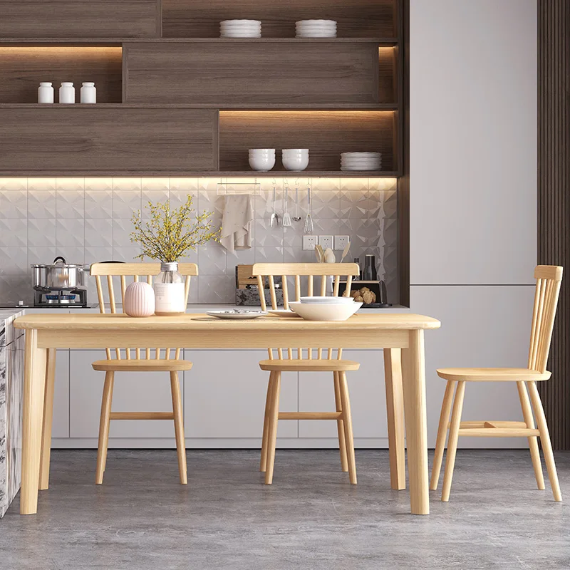 Household small apartment simple modern multi function solid wood rectangular kitchen dining room table
