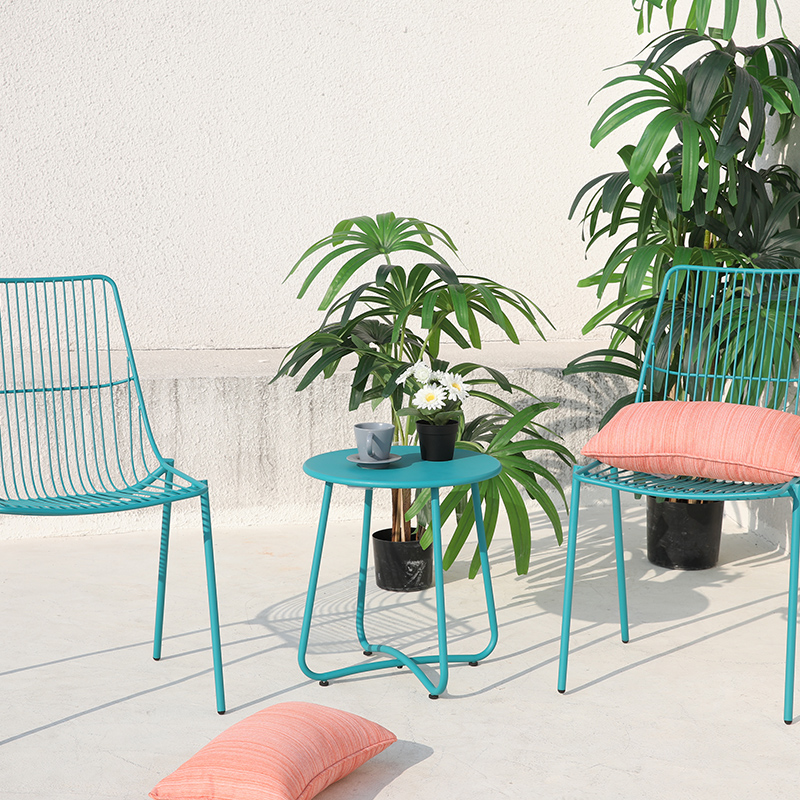 Balcony Furniture Assemble Steel Small Round Garden Coffee Table For Outdoor