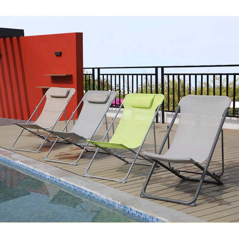 Cheep Price Outdoor Furniture Steel Sling Beach Chair with Pillow