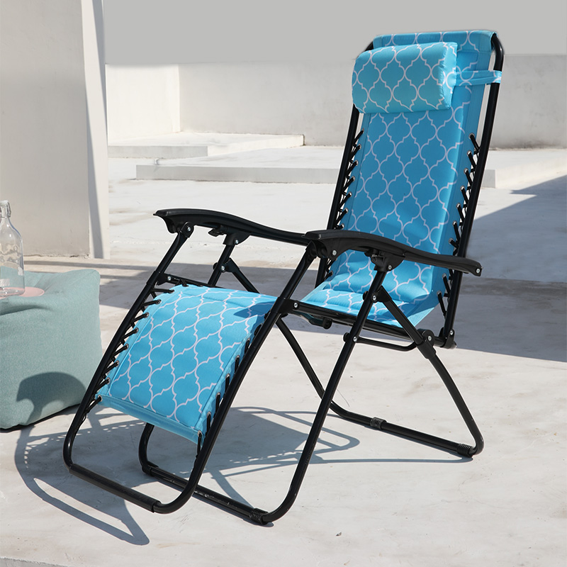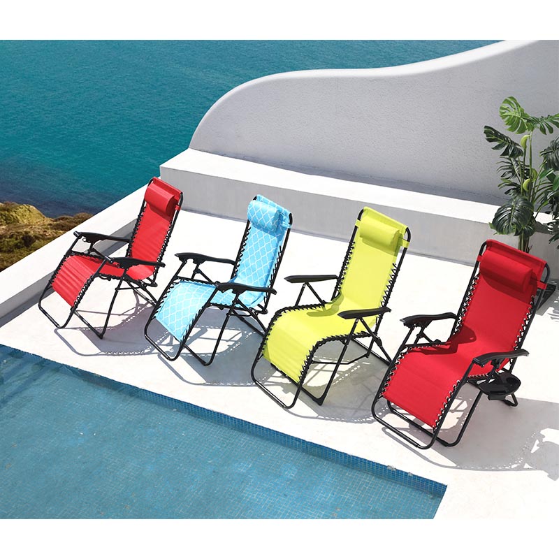 Patio furniture steel polyester recliner padded folding zero gravity lounge chair