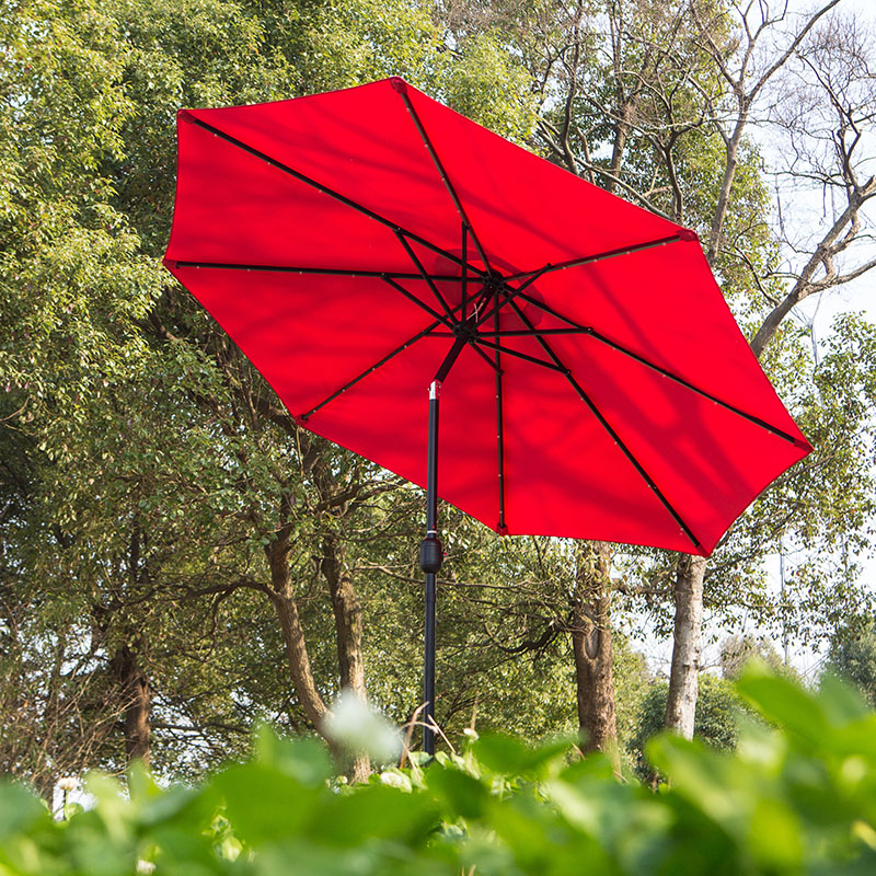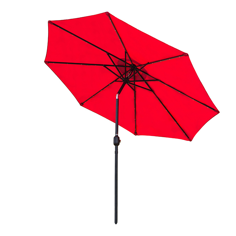 New design aluminum 4 LED light market patio umbrella with with solar panel