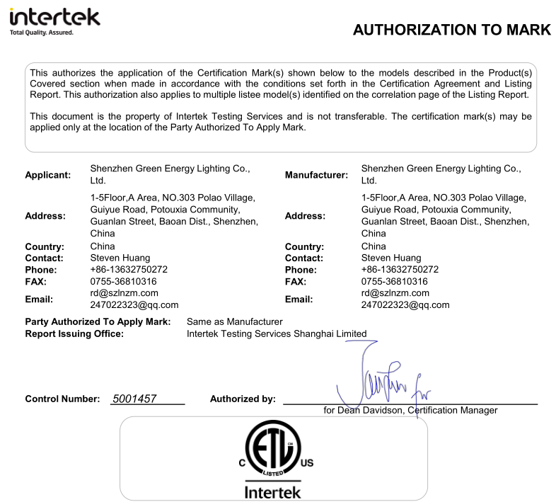 Winnie: 95% of products with ETL, cETL, DLC, TUV GS, SAA
