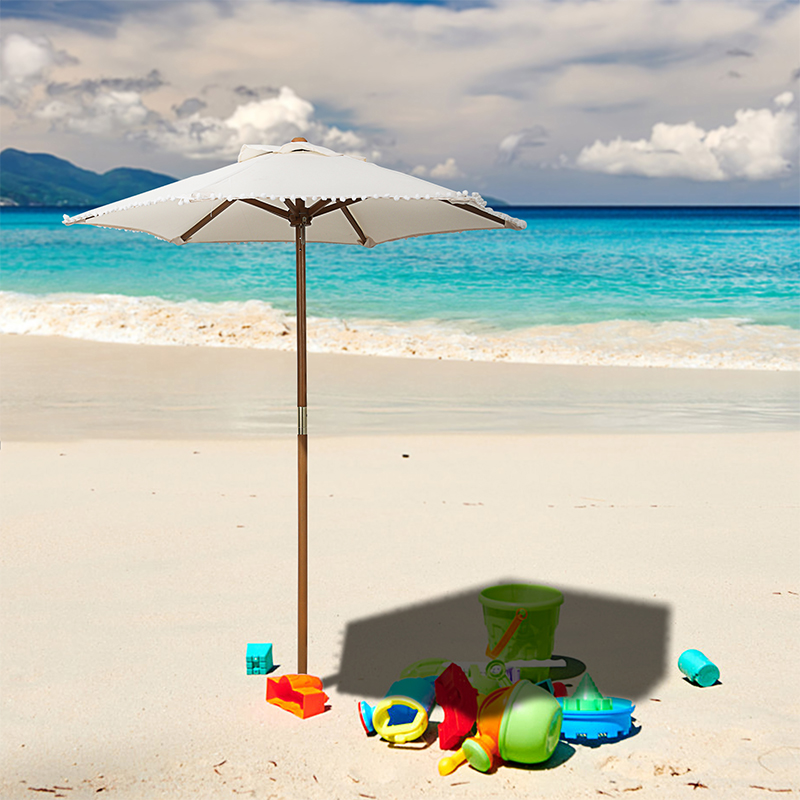 Home Outdoor Living & Household Photovoltaic Power Generation Outdoor Shade&Sunroom&Camping Parasol Guangzhou Topmax Enterprise Limited Excellent design wholesale wooden beach umbrella for kids with decorative fur balls
