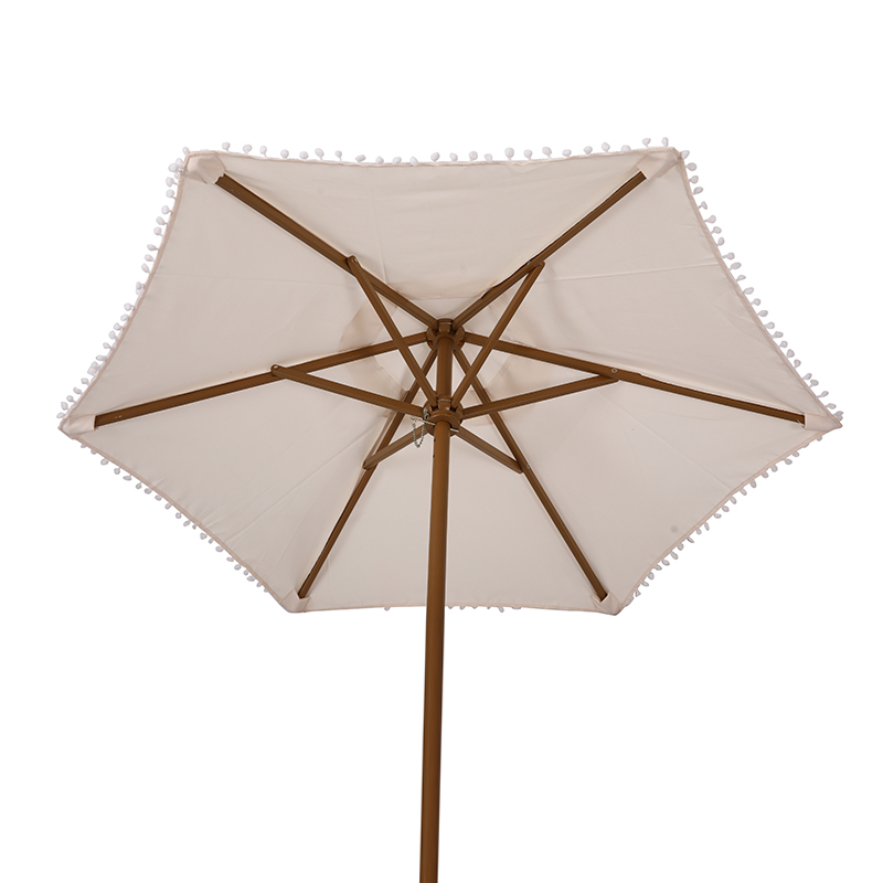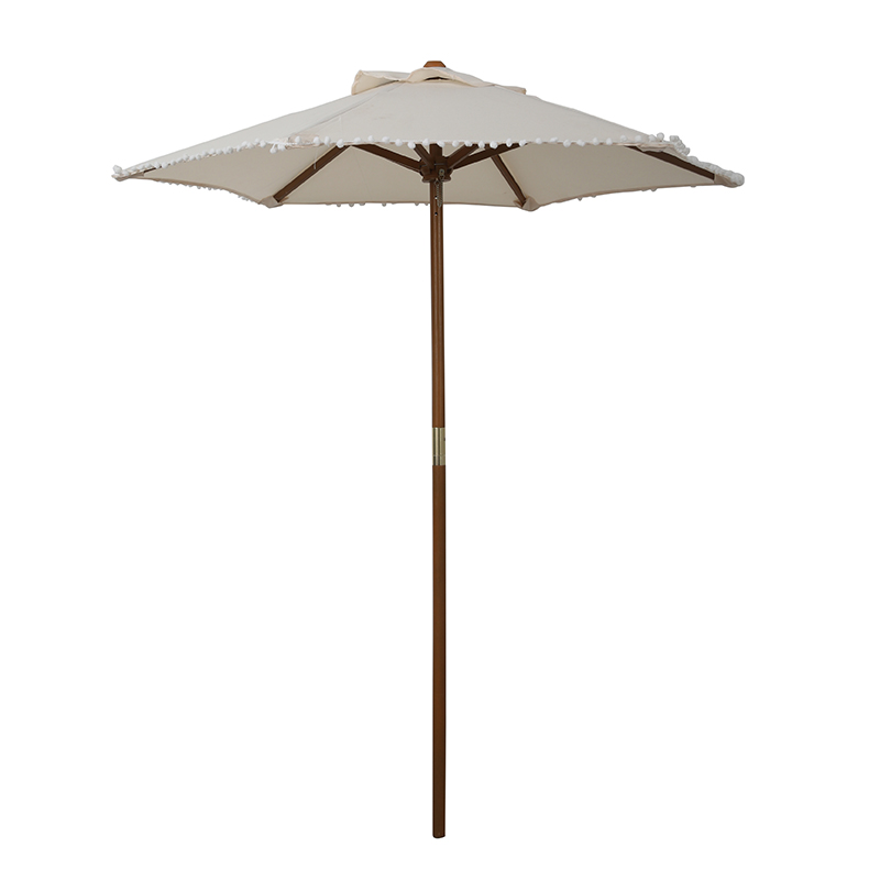 Excellent design wholesale wooden beach umbrella for kids with decorative fur balls