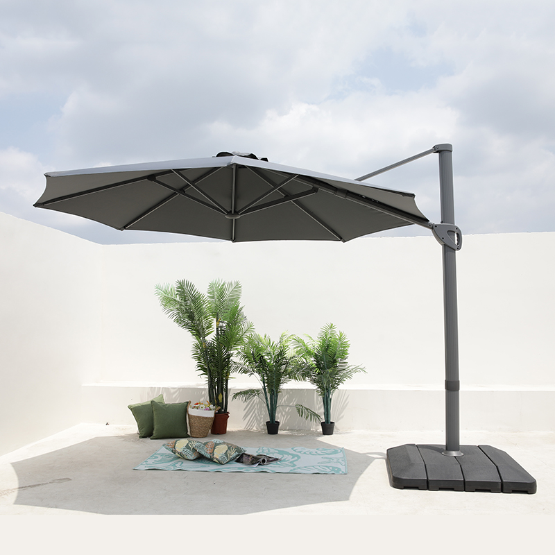 Outside Decoration Alum Hanging Customised Sun Umbrella with Plastic Umbrella Base