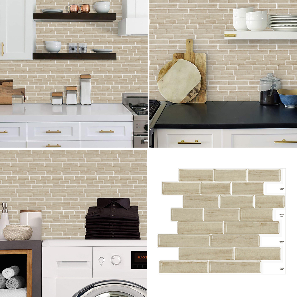 11.25 x10 Inch Brown And White Marble Mosaic Sticker Anti-Mold Self Adhesive Kitchen Backsplash Decor Waterproof Tiles