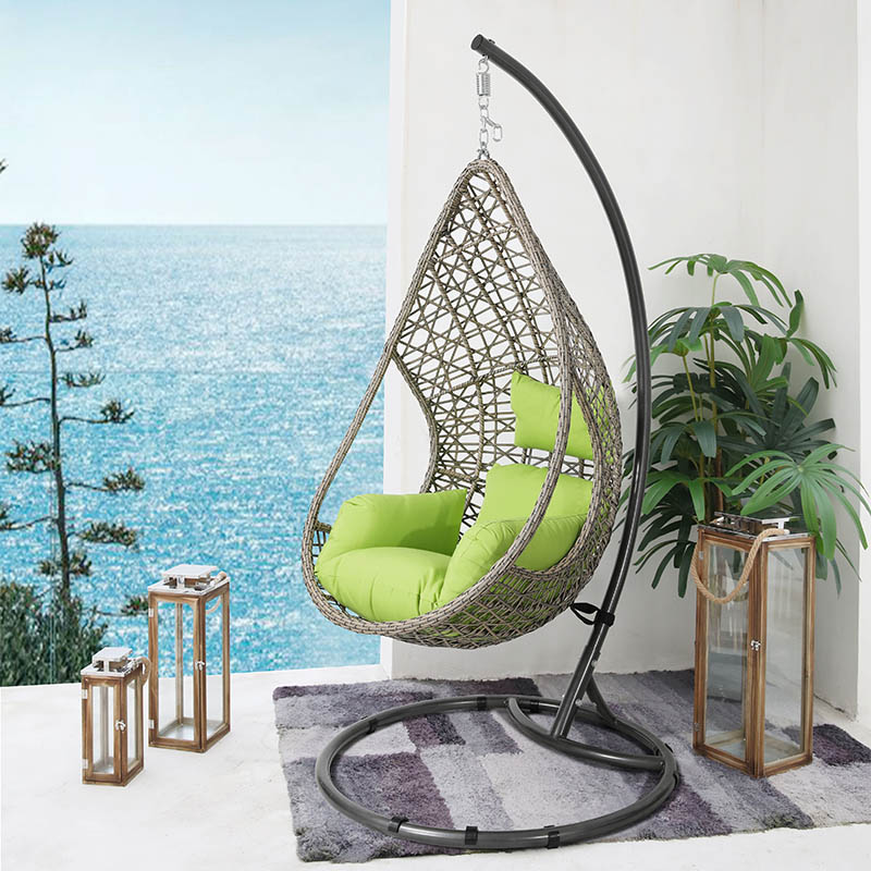 Hot sale outdoor steel pipe PE wicker egg shape garden hanging swing Chair