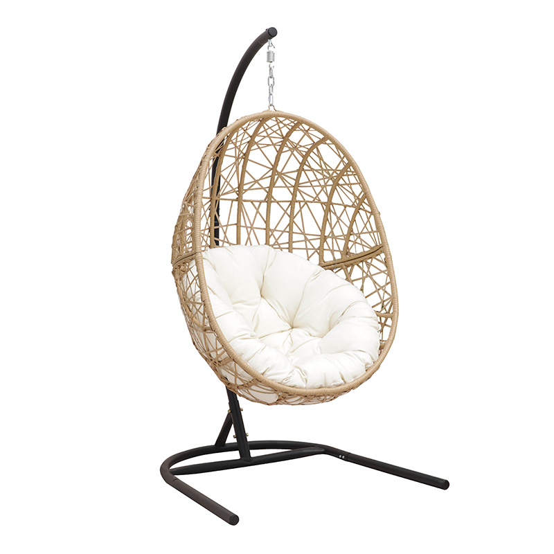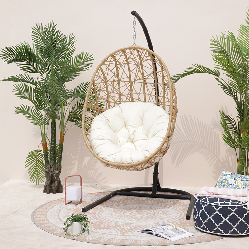 Outdoor garden furniture PE rattan KD steel egg hanging single seat swing chair