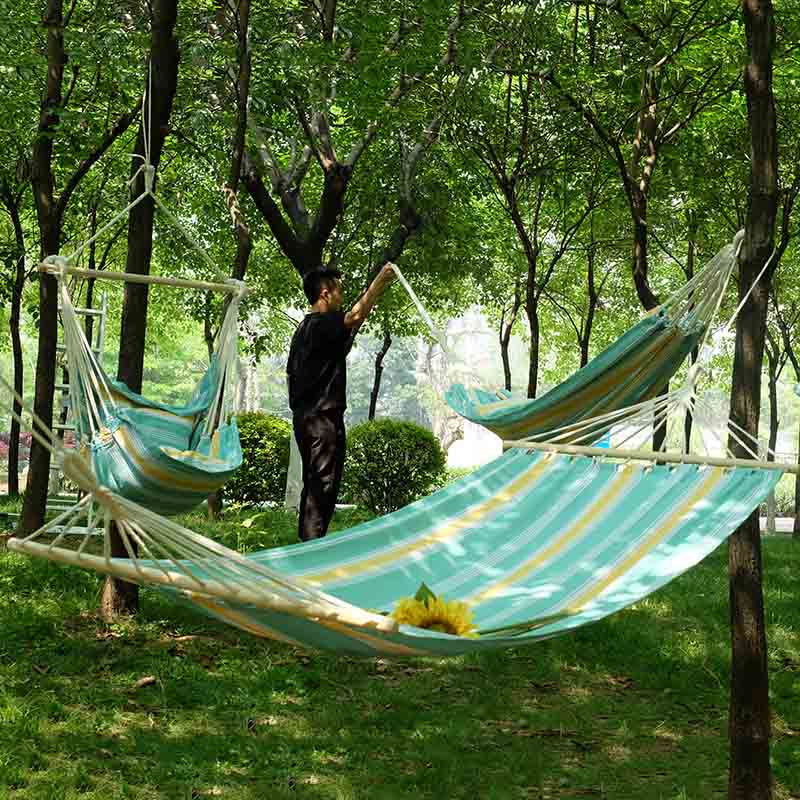 Hot sale outdoor garden striped poly cotton wood hanging swing hammock