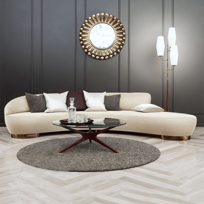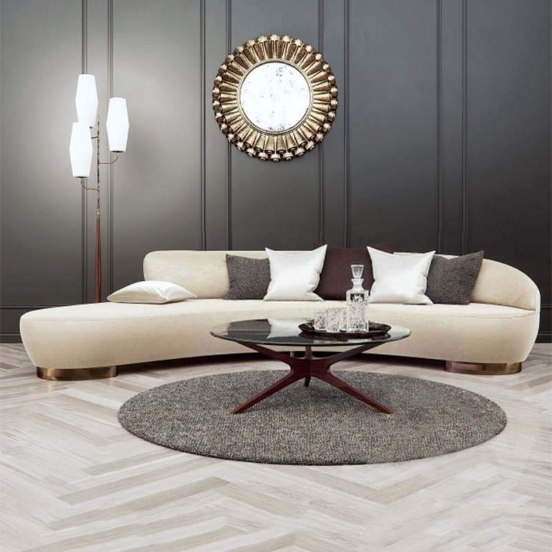 Grey elegant wooden modern design couch living room furniture curve shape sofa
