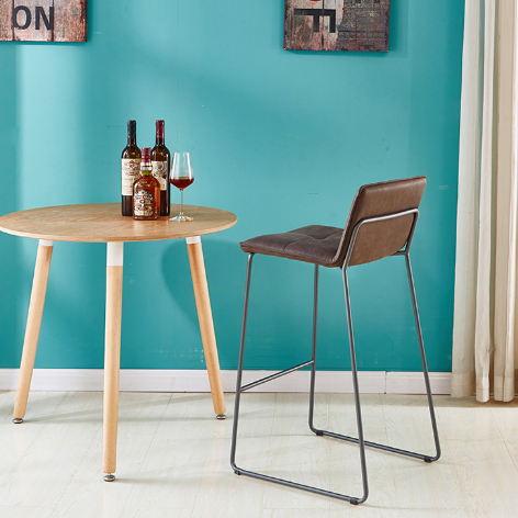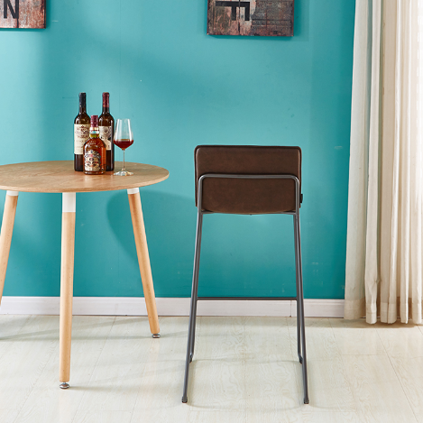 China supplier italian design vintage pu leather upholstery iron metal legs footrest high bar stool chair