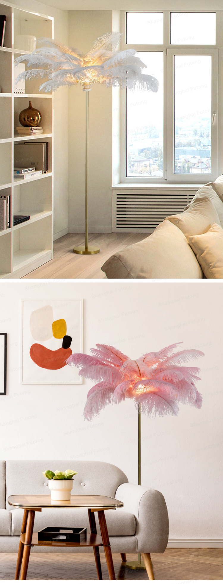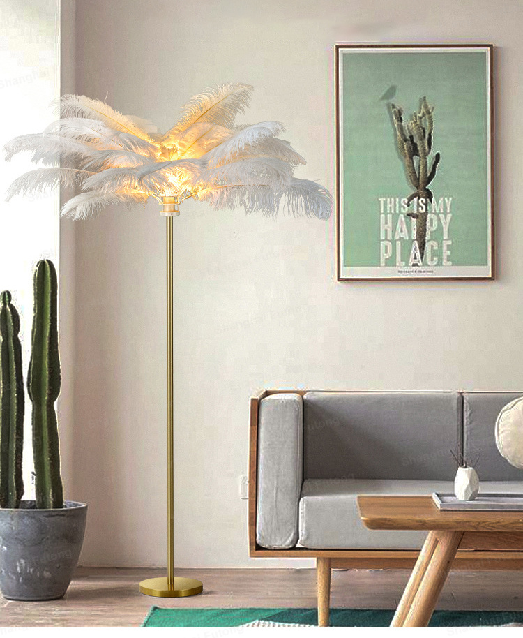 Home Lighting, Artwork & Interior Decoration Accessories Indoor Customized Lighting Floor Lamps Shanghai Futong Construction Engineering Co., Ltd Nordic Minimalist Decor Copper Ostrich Stand Lamp Feather Led Floor Lamp For Bedroom