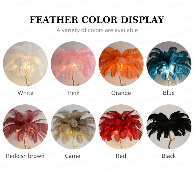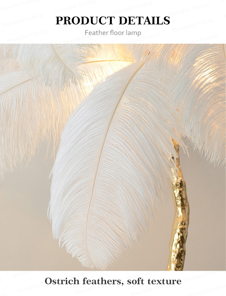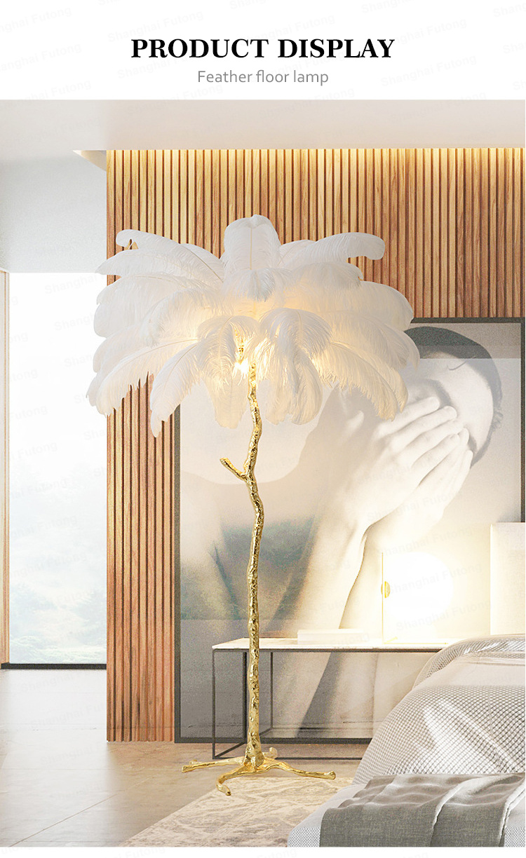 Home Lighting, Artwork & Interior Decoration Accessories Indoor Customized Lighting Floor Lamps Shanghai Futong Construction Engineering Co., Ltd Plume Light Postmodern Gold Resin Ostrich Feathers White Floor Luxury Standing Palm Tree Feather Lamp Tree