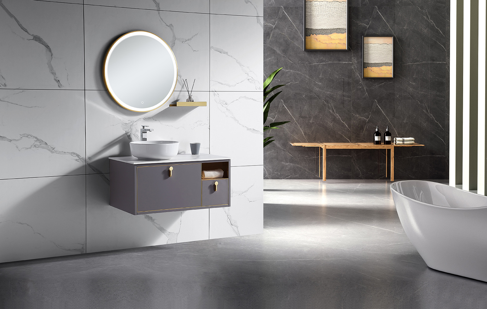 Modern minimalist bathroom cabinet combo marble washbasin small apartment bathroom vanity basin