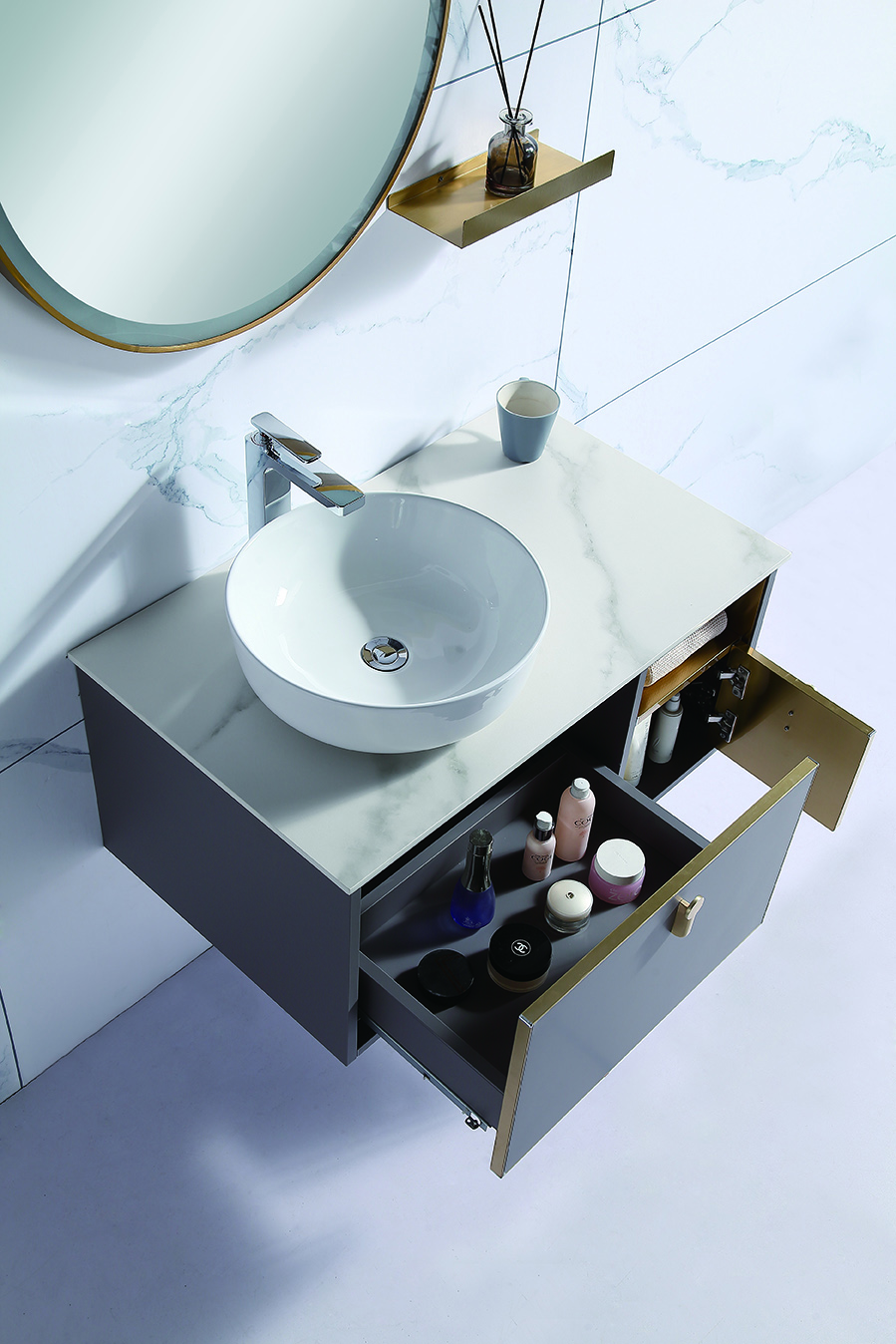 Home Bathroom Products,Sinks Bathroom Cabinets Foshan Jottai Metal Products Co., Ltd Modern minimalist bathroom cabinet combo marble washbasin small apartment bathroom vanity basin