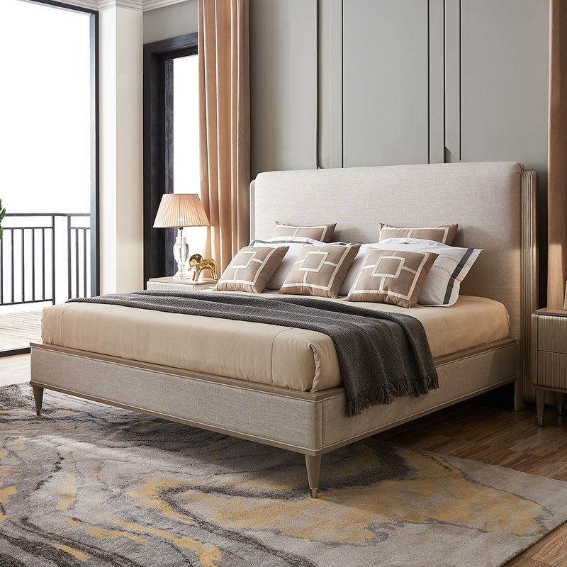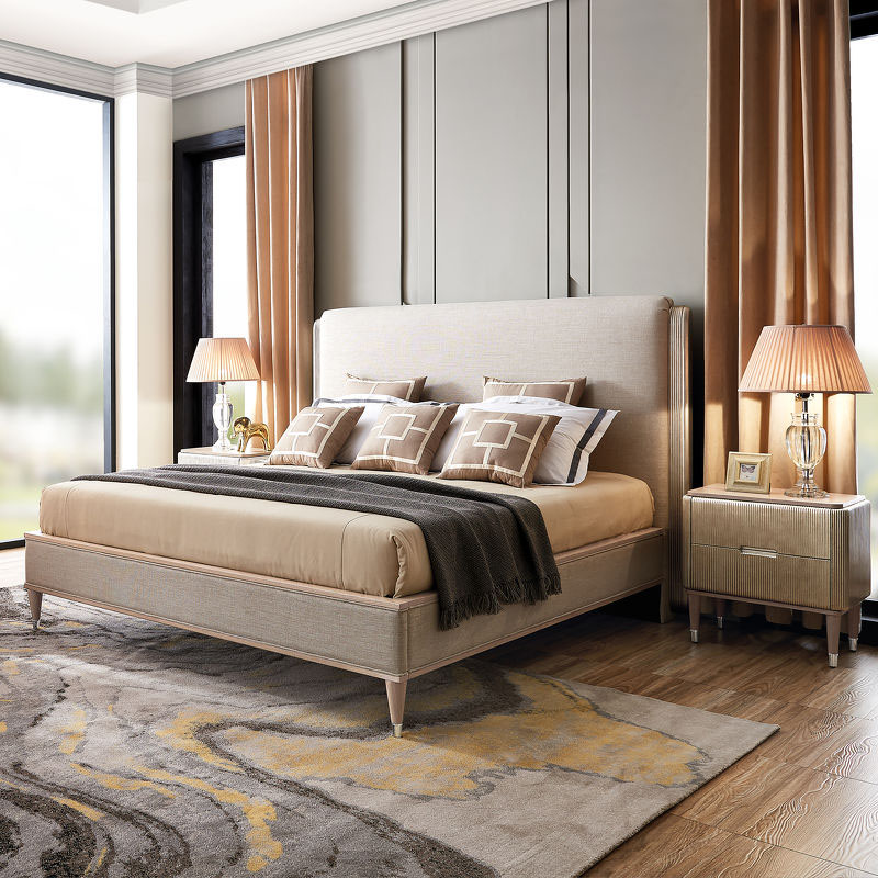 Home Movable Housing Furniture & Household Appliances Bedroom Furniture Beds Shanghai Xinshu Furniture Design Co., Ltd. New Type Champagne Color Morden Wooden Bed Single Bed Frame Wooden King Size Wooden Bed