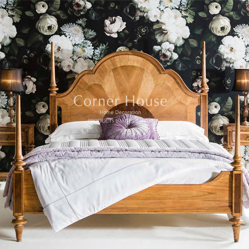 Wholesale Brown Rectangle Wood Bed Furniture Bed Frame Solid Wood King Size Wooden Beds