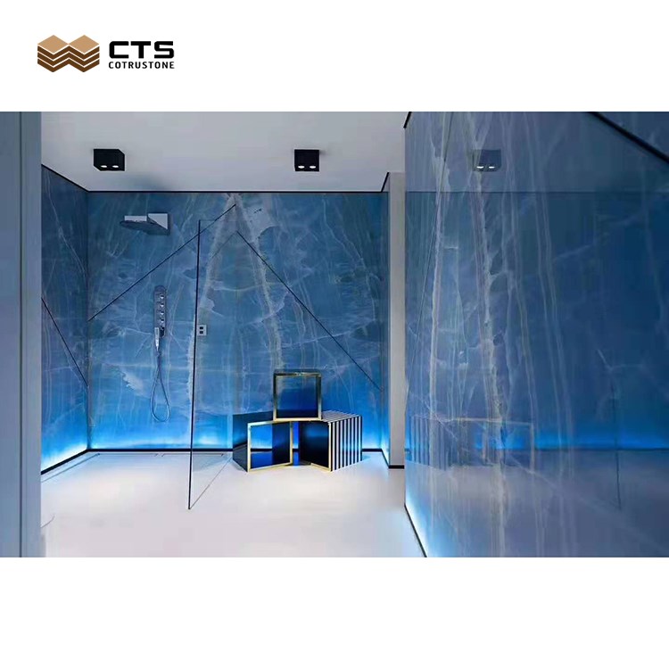 Home Stone,Tiles,Flooring & Walls Material Stone Natural Onyx Xiamen Cotrustone Imp. & Exp. Co., Ltd. Luxury Transparent Wall Panel Natural Blue Agate Onyx slab Custom Size Table Top