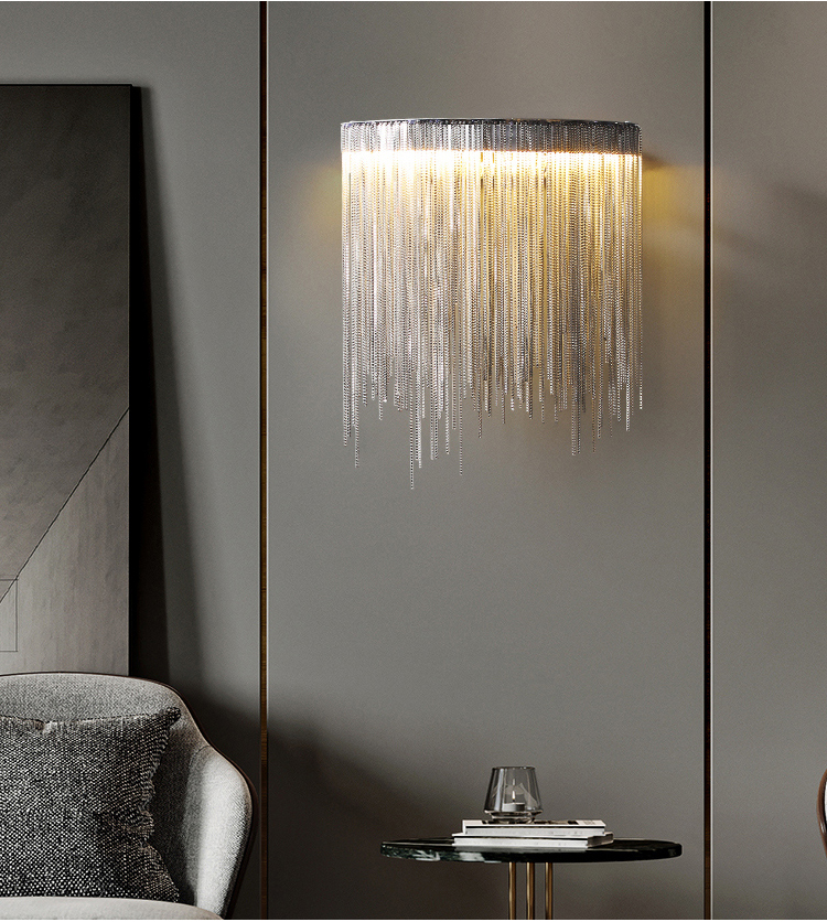 Store decoration lighting 6000K cool white silvery tassel wall lamp