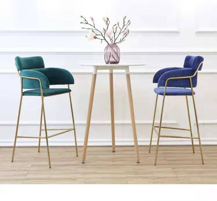 Premium upholstered Dining High Back Stool Bar Chairs Velvet Kitchen Stools with Gold Metal Legs Stools with Backrests Footrests