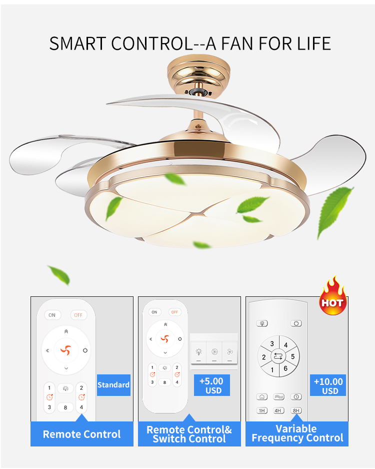 Standard is Remote control, if you need Wall switch and Inverter control, please contact us.