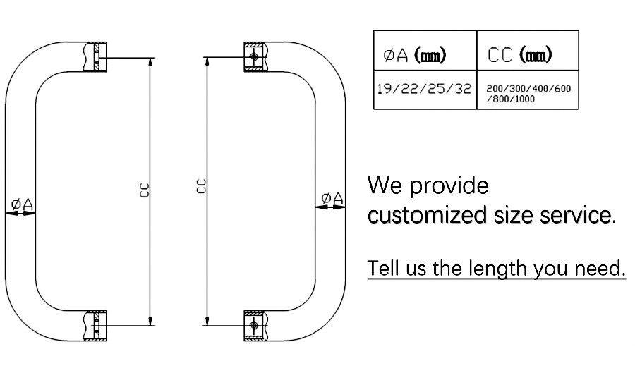 Stainless Steel Glass Door Shower Double Sided Door Pull Handle