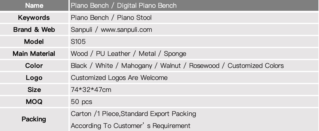 Sanpuli Factory S105 Top Sales Double Wooden Piano Bench With Storage Solid Wooden Piano Stool Bench
