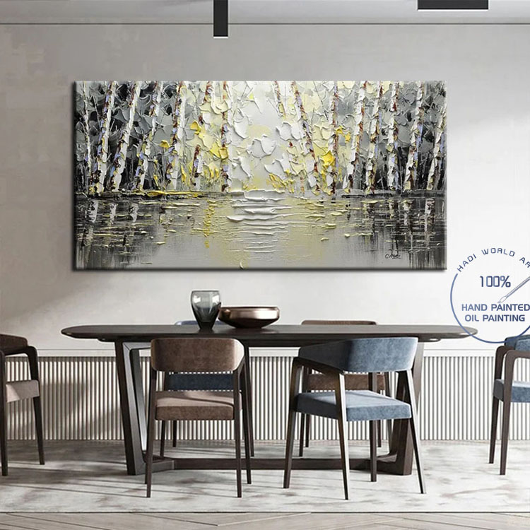 Home Lighting, Artwork & Interior Decoration Accessories Interior Decoration Accessories Decoration Painting Xiamen Hadi World Oil Painting Co., Ltd. Big sale hand painted heavy texture abstract birch art living room decoration landscape oil painting