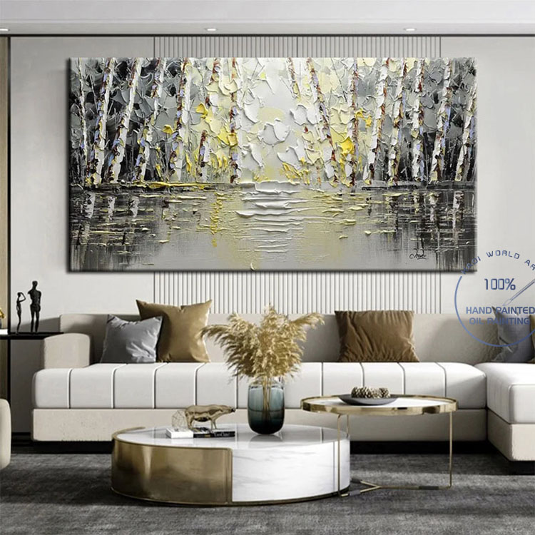 Big sale hand painted heavy texture abstract birch art living room decoration landscape oil painting