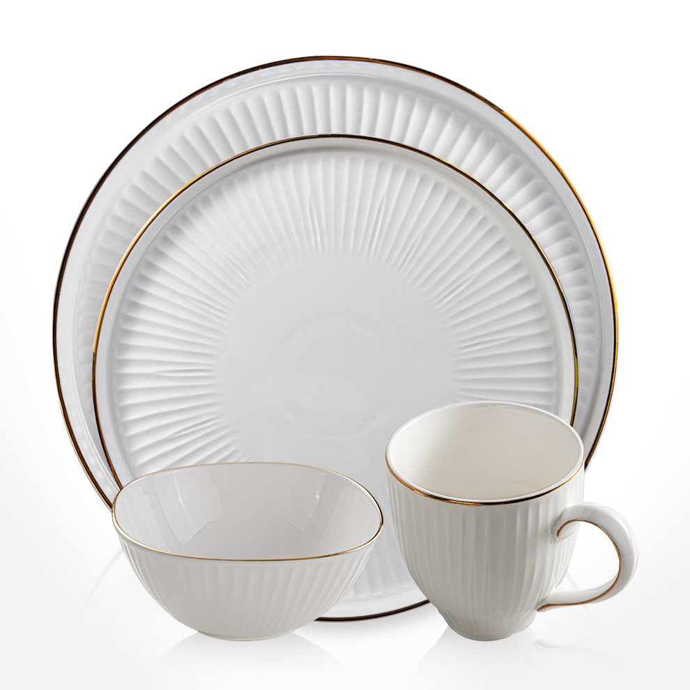 Luxury Wedding Dinnerware with Gold Rim Decor Table 10.5" Ceramic Plates Modern Soup Salad Bowl Coffee Mug Porcelain Dinner Sets
