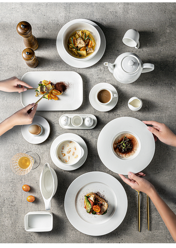 JiuJiuJu Porcelain Soup Bowl Set Luxury Elegent Design For Wedding Hote Buffet White Roun Ceramic Soup Bowls with Double Handles