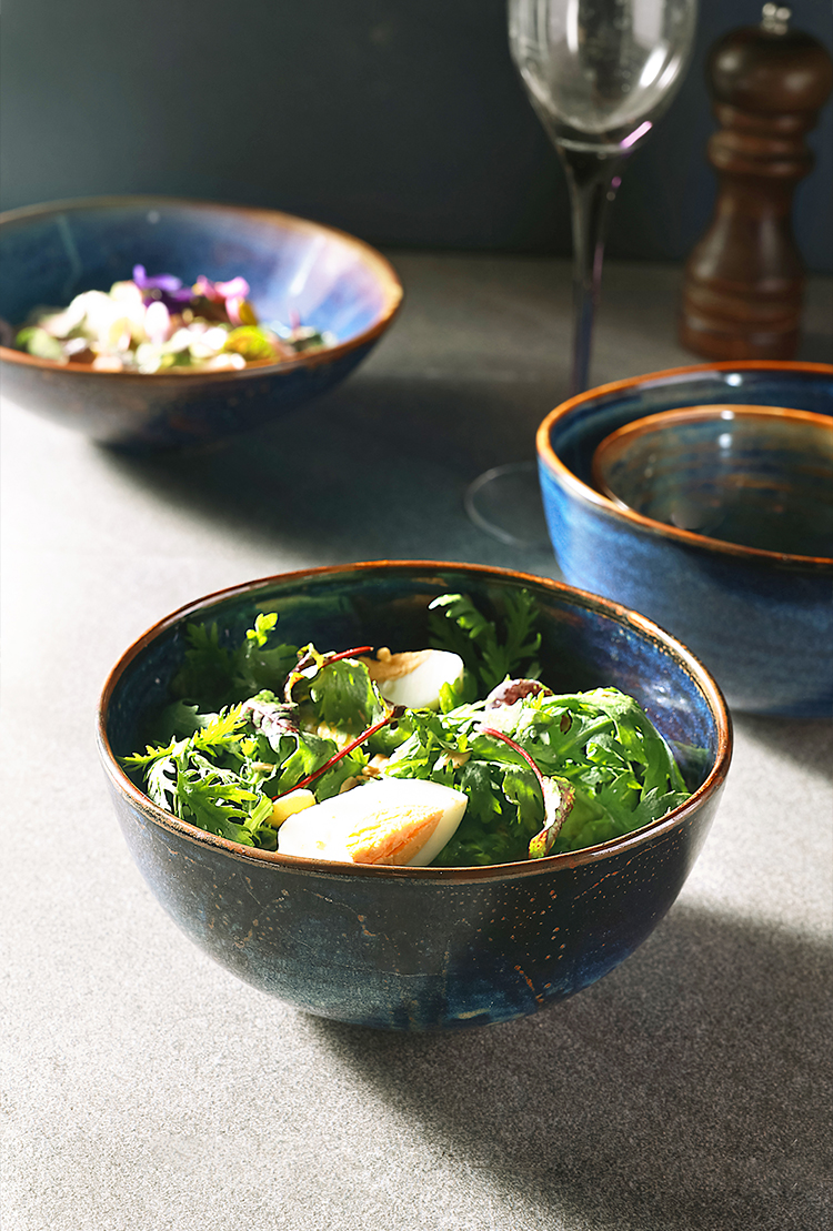Home Hospitality Supplies Dinnerware Bowl Guangzhou Jiujiuju Homeware Supplies Co., Ltd. Restaurant Blue Art Decor 6 Inch Ceramic 4pcs Soup Bowl Mixed Size Low MOQ Colored Rim Unique Shape Bowls Sets Customized