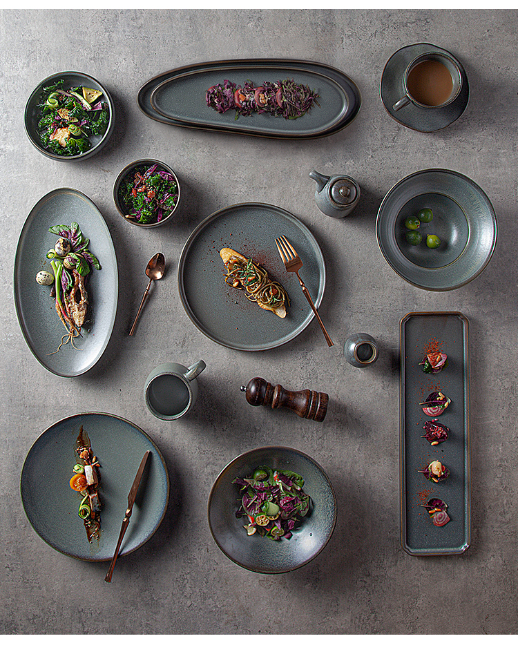 Home Hospitality Supplies Dinnerware Plate Guangzhou Jiujiuju Homeware Supplies Co., Ltd. Stone Irregular Dinnerware Ceramic High-end Clud Porcelains Other Hotel & Restaurant Supplies Creative Oblong Plates Oval Dishes