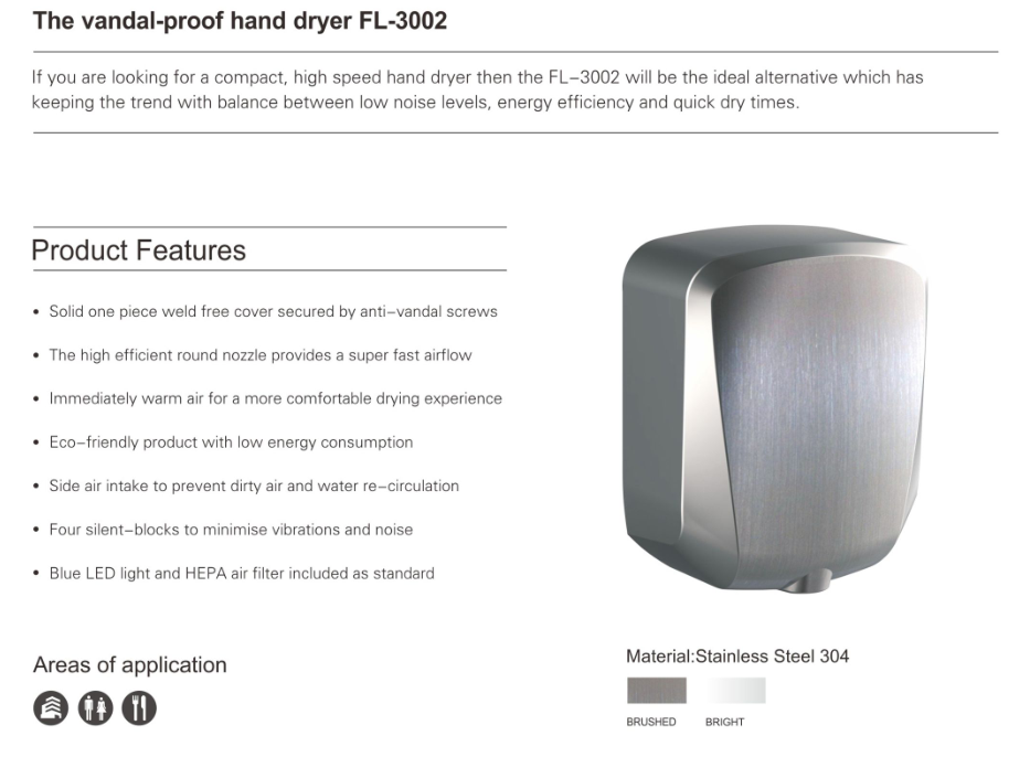 Falin Fl-3002 Automatic Commercial Hand Dryers for Bathrooms Commercial 1800W Heavy Duty Stainless Steel